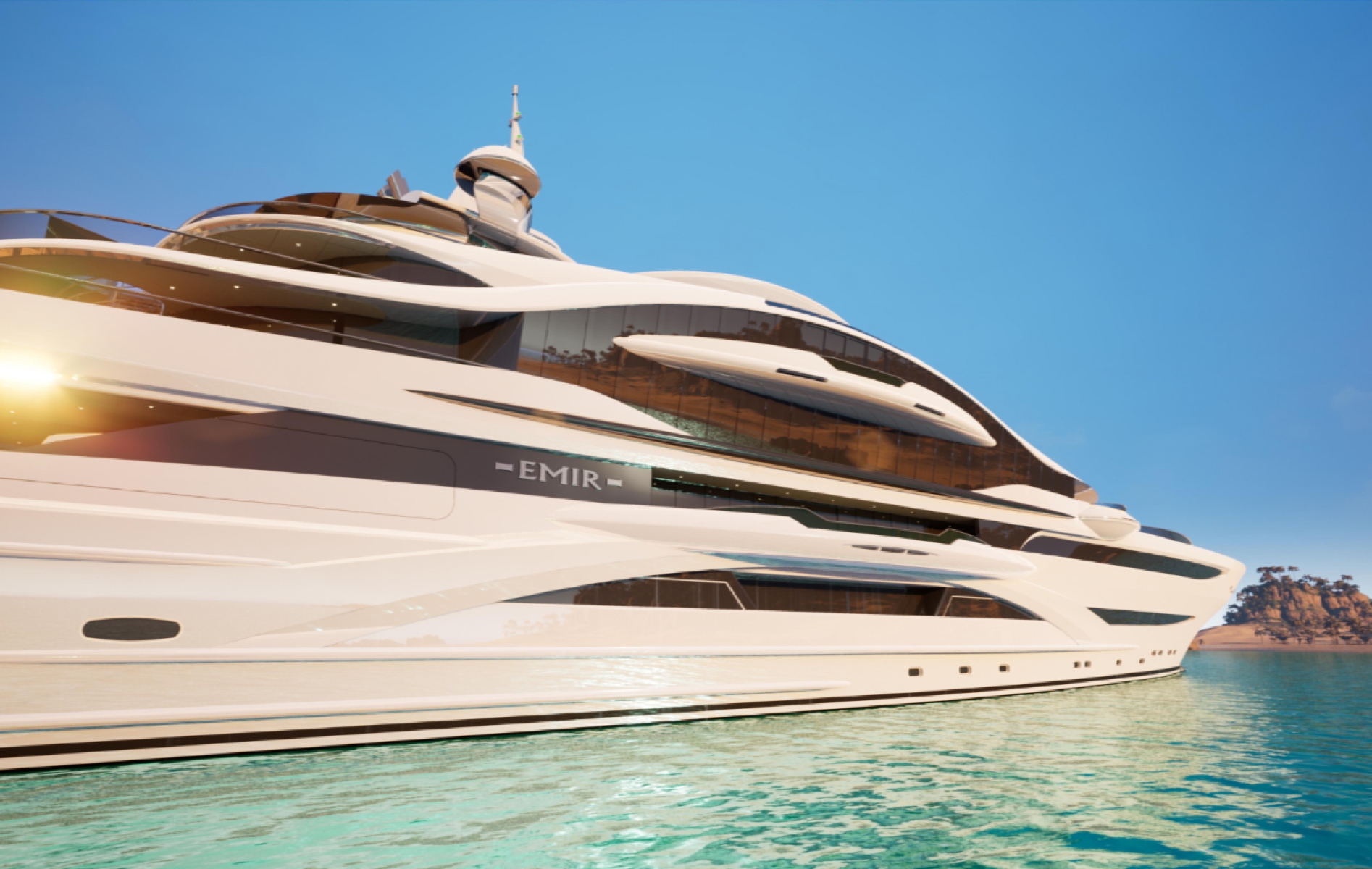 Emir pushes the boundaries inside and out with a design that celebrates our signature styling cues, while displaying a development in its design approach. The motoryacht offers a stylish exterior containing large interior spaces to provide guests with a feeling of grandeur and elegance. All this has been matched with operational elements in mind to allow the crew to conduct duties without disturbing owner and guest areas.